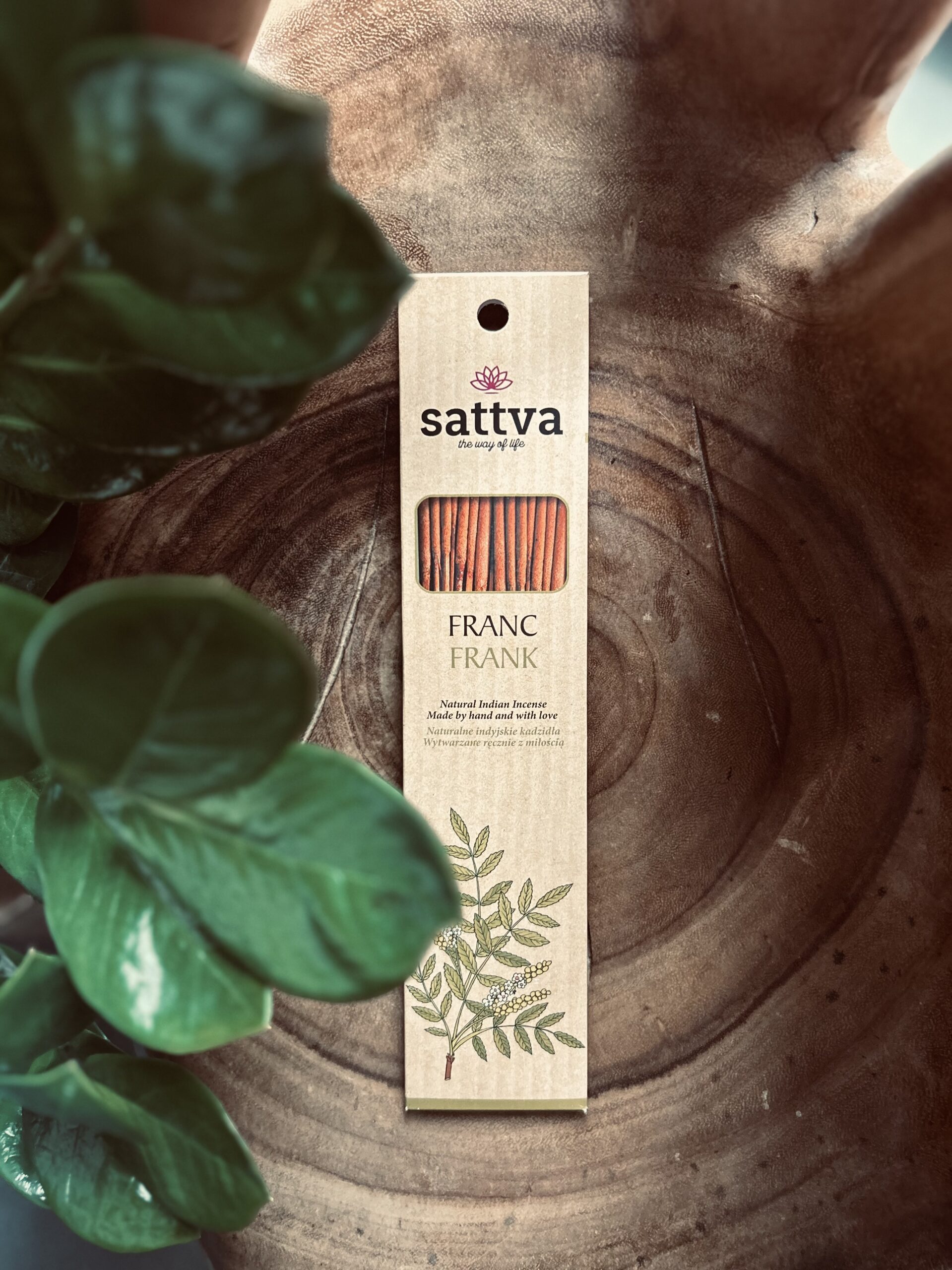 Kadzidła Sattva do ponad 400 letnia tradycja. Wytwarzane są ręcznie z esencji kwiatów, ziół, drewna, żywic roślinnych i miodu. Słowo ‘Sattva’ oznacza dobro, pozytywność, prawdę, zdrowie, pogodność, holistyczne spojrzenie na świat, twórczość, konstruktywność, równowagę, pewność, pokój, czystość, wewnętrzną potrzebę rozwoju duchowego i wiedzy.